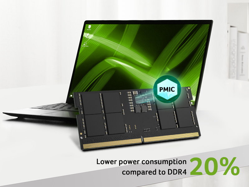 Integrated with PMIC power management, Acer SD200 DDR5 memory modules operate at a low voltage of 1.1 V, reducing power consumption by approximately 20% compared to DDR4 modules. This effectively extends device battery life.