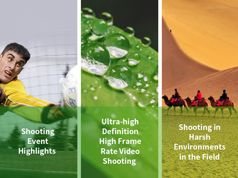 It’s easy to shoot event highlights with the CF100. It features ultra-high definition (UHD) high frame rate video shooting. And it can be used even in harsh environments in the field.