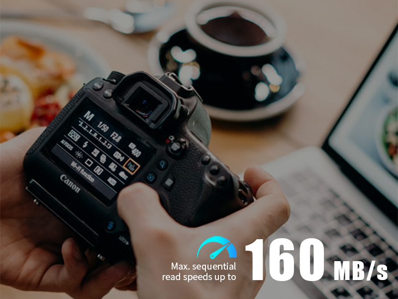 Extremely fast read speed of up to 160 MB/s allows the SC300 to seamlessly transfer pictures and videos to PC. The time you save on