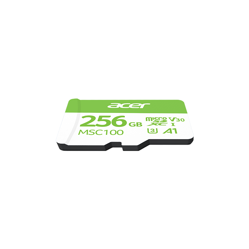 The Acer MSC100 microSD Card is engineered for high-performance and dependable storage across multiple devices. In capacities 62 GB to 256 GB, MSC100 supports C10, U3, and V30 speed classes, delivering read speeds up to 100 MB/s for smooth 4K video recording and rapid file transfers. Also available in 32 GB capacity with C10, U1, and V10, it provides flexible storage solutions for diverse data requirements.
