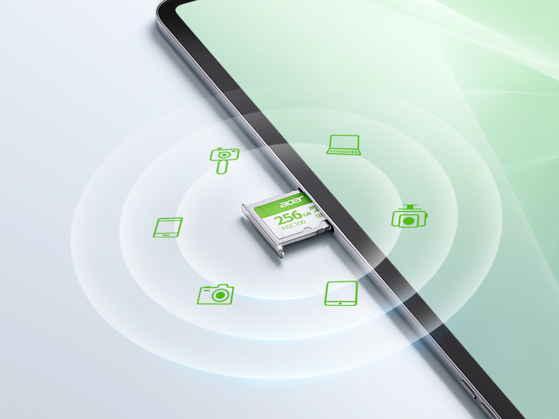The Acer MSC100 is your go-to storage solution, compatible with tablets, laptops, action cameras, dash cams, smartphones, and other microSD-enabled devices. Whether working on a creative project, documenting travels, or simply organizing your digital life, the Acer MSC100 adapts to your needs, offering the freedom to move content effortlessly across multiple platforms.
