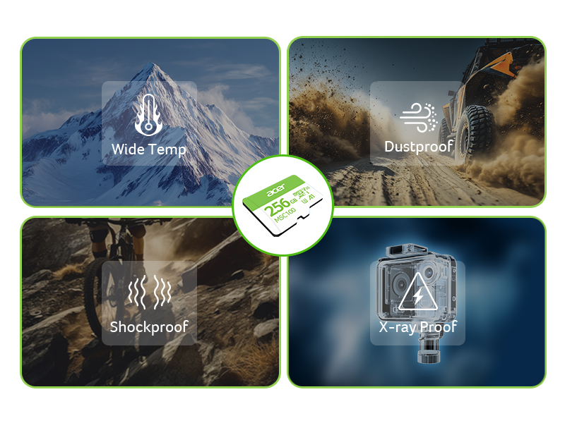 The Acer MSC100 is meticulously engineered for exceptional durability and steadfast performance in demanding environments. With its resistance to shock, dust, and X-ray exposure, along with the ability to withstand high and low temperatures, the MSC100 keeps your data intact even when subjected to physical impact and environmental challenges.
