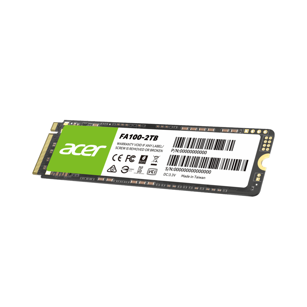 Built from original high-quality 3D NAND wafers, Acer’s FA100 M.2 SSD has become the winner in the marketplace. Making use of its sequential read speed up to 3300 MB/s and sequential write speeds up to 2700 MB/s, the FA100 M.2 SSD handles high workloads efficiently.